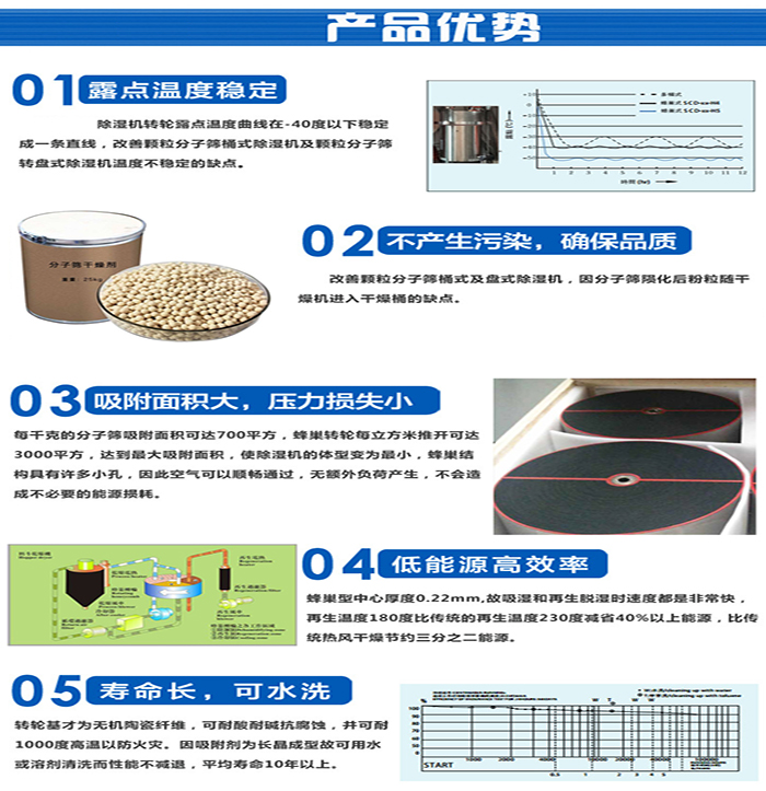 2、 采用日本陶瓷纖維為基材的蜂巢轉(zhuǎn)輪,除濕效果好,性能穩(wěn)定可靠;