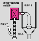 (4)除濕干燥機的空氣管路都采用密閉循環(huán)系統(tǒng),并裝有過濾器,因此不受外界氣候影響以及可以防止粉塵在廠內(nèi)造成污染,改善工作環(huán)境。